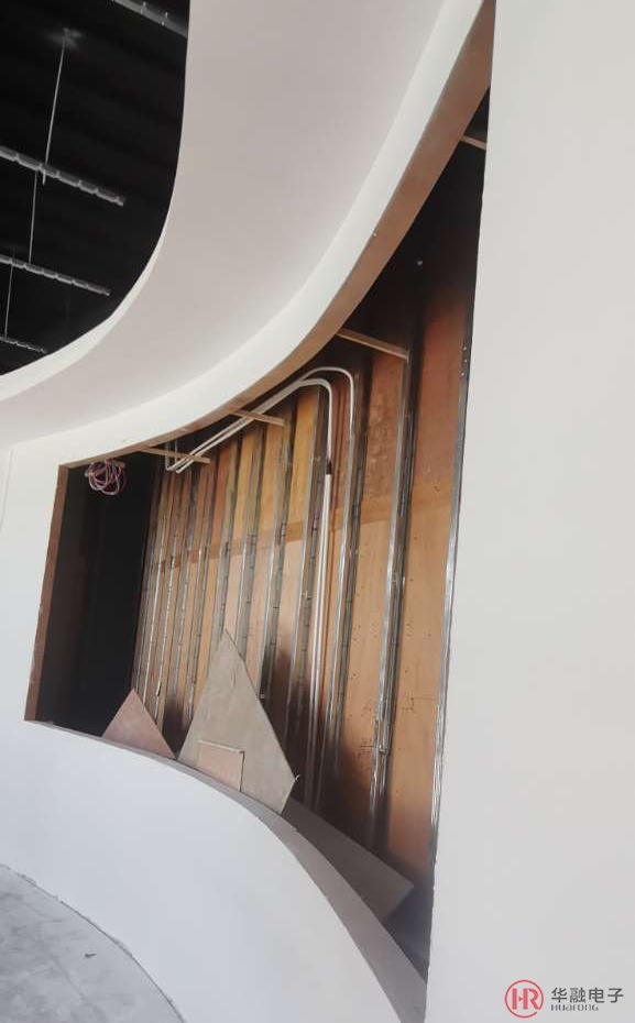 而本案例中P2LED弧形大屏所使用的安裝方式為鑲入式安裝方式。安裝前,客戶方預(yù)留了安裝位,且尺寸滿足整個(gè)大屏外形尺寸需求。該案例墻下方還預(yù)留有較多空間,可便于整個(gè)LED顯示屏部分進(jìn)行散熱。
