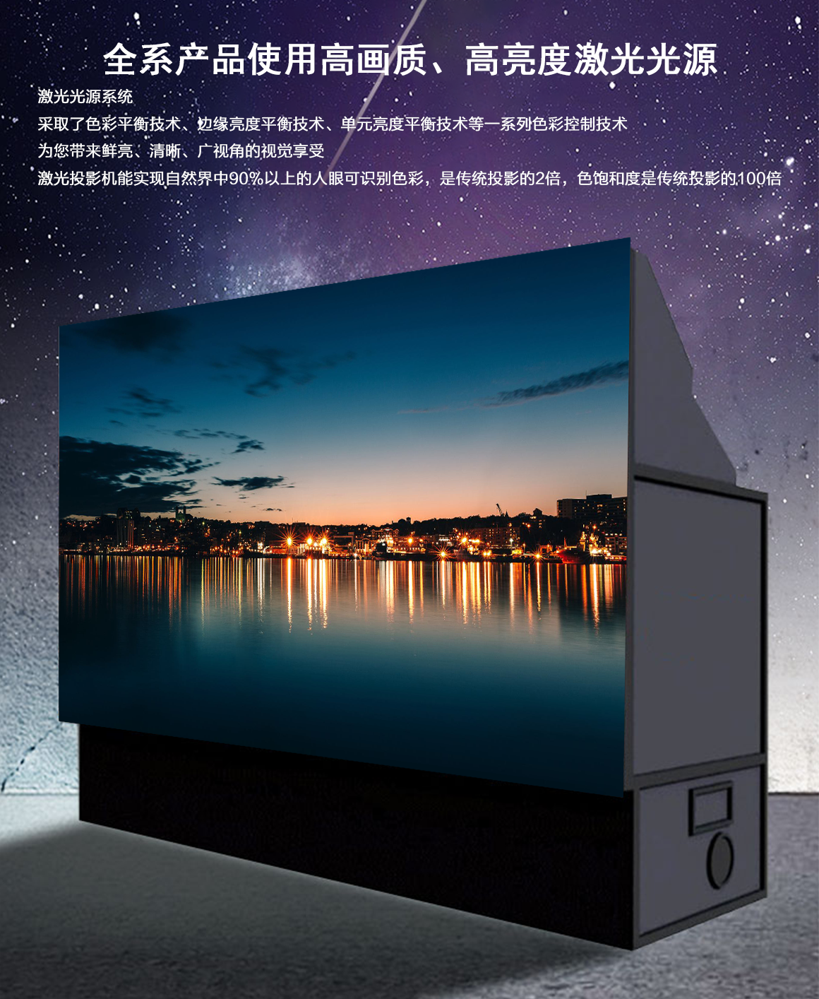 激光光源16:9DLP背投大屏幕產(chǎn)品采用純激光固態(tài)光源設(shè)計(jì)、多信道輸入備份設(shè)計(jì),特色的色彩亮度調(diào)整、信號(hào)數(shù)據(jù)化傳輸編碼技術(shù)及六色調(diào)整等先進(jìn)技術(shù),單元內(nèi)置高性能嵌入式拼接處理器,支持全高清信號(hào)輸入顯示,具有長(zhǎng)壽命、免維護(hù)、高亮度、色彩表現(xiàn)力超強(qiáng)、低功耗、綠色環(huán)保等特點(diǎn),是各類(lèi)應(yīng)急指揮調(diào)度、生產(chǎn)監(jiān)控、多媒體會(huì)商等綜合信息監(jiān)控場(chǎng)所數(shù)字顯示拼接墻系統(tǒng)的理想之選。